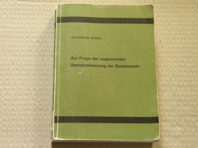 NASER, Siegfried: Zur Frage der sogenannten Demokratisierung der Bundeswehr. Dargestellt unter besonderer Berücksichtigung der Wehrpflichtigen. Inaugural-Dissertation. Würzburg, 1976. 396 (1) S. OKart. Ordnungsgemäß aus Bundeswehrbeständen ausgesondertes Bibliotheksexemplar (Stempel, Rückenschild). EA.