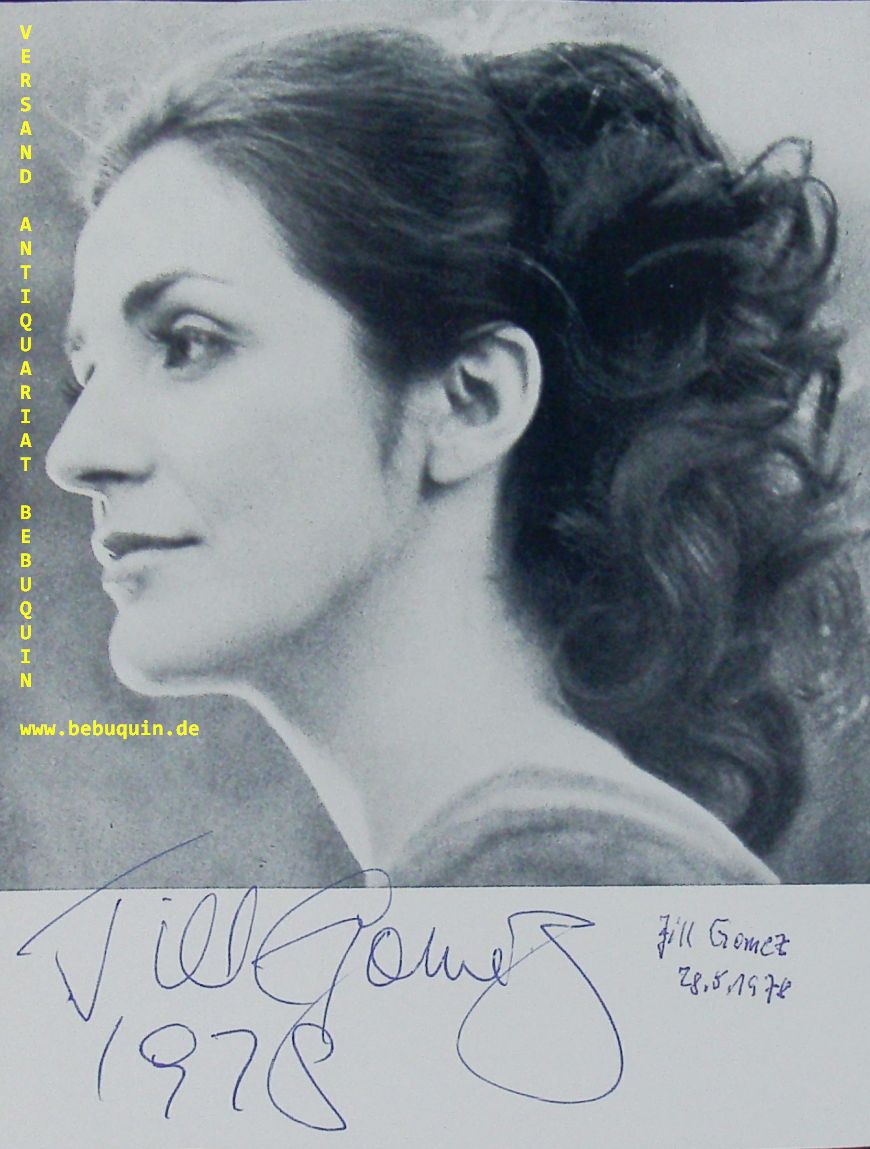GOMEZ, Jil (Sopran): eigenhändig signiertes und datiertes Portrait aus Programmheft. München (Philharmonie), 28.8.1978. 21 x 15 cm. 2 Bl. Jill Carnegy, Countess of Northesk (née Gomez; born 21 September 1942) is a Trinidadian and British soprano who enjoyed an active career on the operatic stage and in the concert hall in a wide repertoire, and has made many recordings. (Wikipedia)