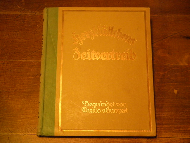 GUMPERT, Thekla von: (Begr.) Herzblättchens Zeitvertreib. 67. Bd. Unterhaltungen für kleine Knaben und Mädchen zur Herzensbildung und Entwicklung der Begriffe. Hrsg. von Josephine Siebe. Glogau (Flemming), (1922). 192 S. mit zahlr. z.T. farb. Bildern. ill. OHLn. fliegender Vorsatz fehlt, dort auch etwas gelockert.