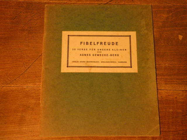GEWECKE-BERG, Agnes: Fibelfreude. 30 Verse für unsere Kleinen zu Osswalds Bildern in Zimmermanns Fibeln. 2. Aufl. Braunschweig (Westermann), 1926. 32 S. OKart. Einband leicht geblichen. Teistler 2598.1.