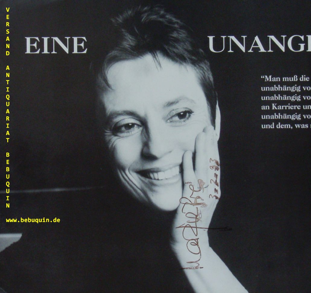 PIRES, Maria Joao (Pianistin): eigenhändig signierte und datierte Portraitseite. München (Philharmonie), 3.2.1993. 20 x 21 cm. 2 Bl. leicht wischspurig. Maria João Alexandre Barbosa Pires (* 23. Juli 1944 in Lissabon) ist eine portugiesische Pianistin, die seit 2006 in Brasilien (Lauro de Freitas) lebte und 2010 die brasilianische Staatsbürgerschaft annahm. Maria João Pires war mit dem Violinisten Augustin Dumay verheiratet und hat sechs Kinder. Sie beendete 2018 ihre aktive Konzertlaufbahn und lebt in Brüssel.(Wikipedia)