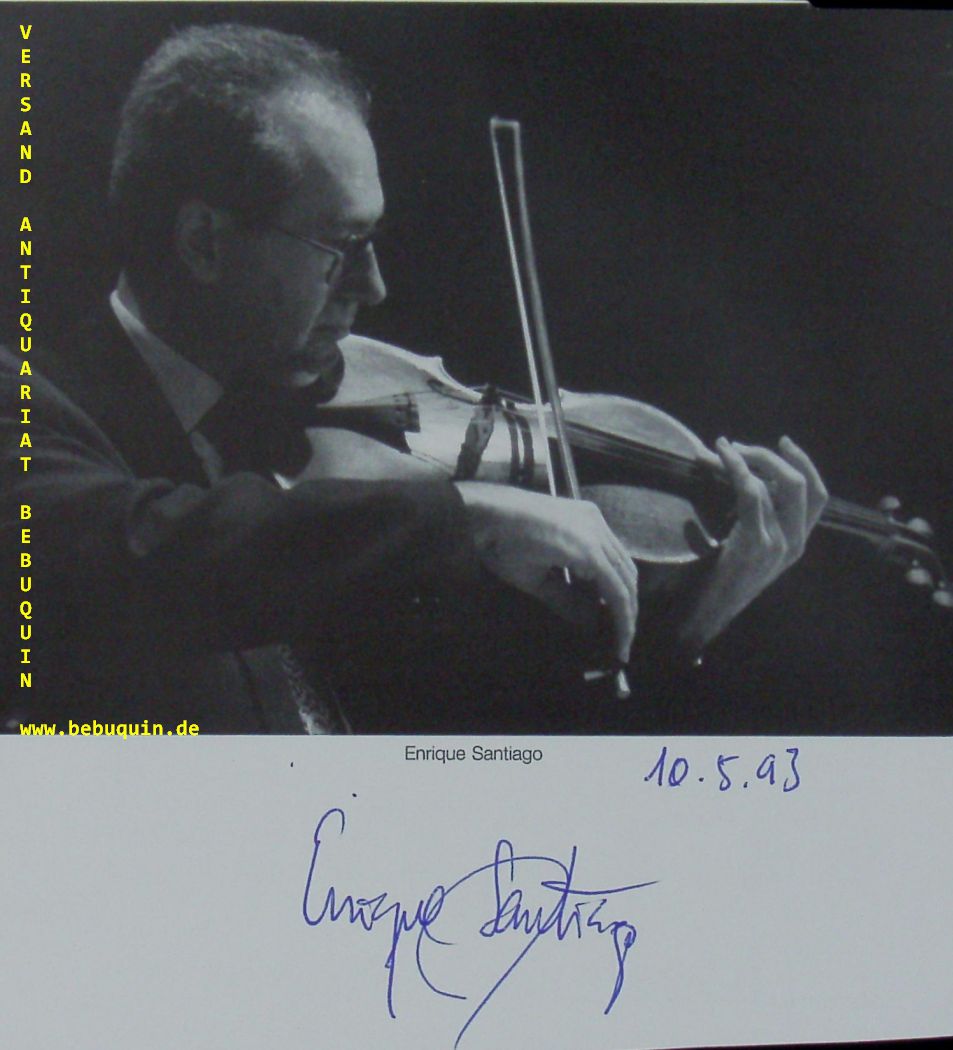 SANTIAGO, Enrique (Bratschist): eigenhändig signierte und datierte Portraitseite. München (Herkulessaal), 10.5.1993. 15,5 x 14,5 cm. 1 Bl. Enrique Santiago (* 1939 in Madrid) ist ein spanischer Bratschist. (Wikipedia)