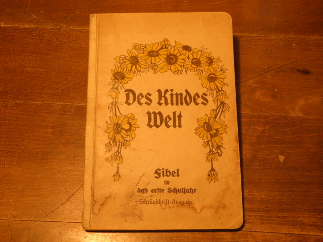 DIECKMANN, Konrad: Des Kindes Welt. Fibel für das erste Schuljahr. Schrägschrift-Ausgabe. Dortmund (Crüwell), (1922). Gr. 8°. 80 S. mit vielen meist bunten Bildern. ill. OKart. durchgängig schmutzrandig, NaT, Blattrand vereinzelt beschädigt, ein Bild im Fibelteil ersetzt.