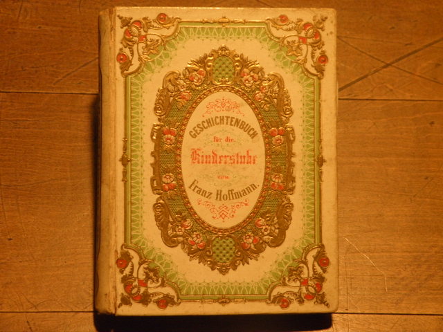 HOFFMANN, Franz: Geschichtenbuch für die Kinderstube. Kleine moralische Erzählungen für Kinder von 5 bis 8 Jahren. 7. Aufl. Leipzig (Bernst), 1879. kl. 8°. 272 (2) S. mit 8 kolorierten Lithographien, davon 1 Frontispiz. reich verzierter farb. OPb mit Goldhöhung. Kanten leicht angeplatzt, sonst feines Ex. Wegehaupt 1459.