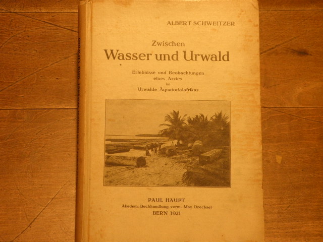 SCHWEITZER, Albert: Wasser und Urwald. Erlebnisse und Beobachtungen eines Arztes im Urwalde Äquatorialafrikas. Bern (Haupt); 1921. 165 S. + 12 fotografische Bildtafeln. ill. OPb. leicht gebräunt, NaT, insgesamt gut erhalten. seltene EA.