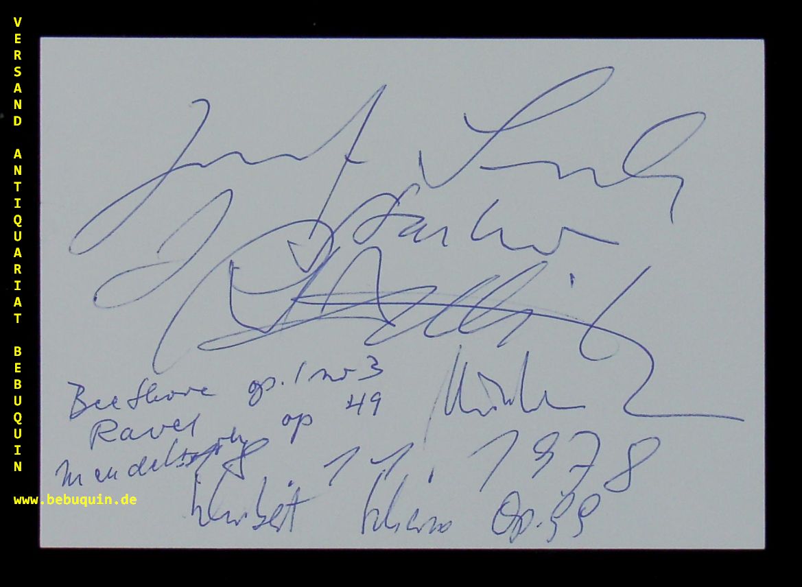 SUK, Josef (Violinist): eigenhändig signierte und datierte Autogrammkarte. München (Kongresssaal), 8.11.1978. 10,5 x 14,5 cm. große Karteikarte und Portraitafel. Josef Suk (* 8. August 1929 in Prag; † 7. Juli 2011 ebenda) war ein tschechischer Geiger und gelegentlicher Bratscher. Er war der Enkel des Komponisten Josef Suk und Urenkel des Komponisten Antonín Dvorák. (Wikipedia)