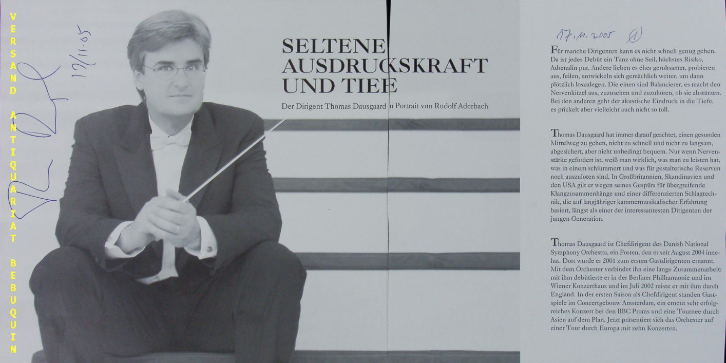 DAUSGAARD, Thomas (Dirigent): eigenhändig signierte und datierte Portraitseite. München 17.11.2005. 20 x 21 cm. 1 Bl.