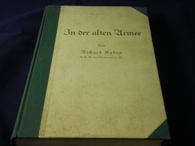 SACHSEN.– KADEN, Richard: In der alten Armee. Lebenserinnerungen aus Frieden und Krieg. Groitzsch (Reichardt), 1933. 324 S. mit 1 fotografischen Portraittafel und zahlr. Kartenskizzen. OHLn. Einband leicht angeschmutzt, sonst gut. = Beiträge zur Deutschen Familiengeschichte, Bd 13. seltene EA. Biografie des aus Dresden stammenden Generalleutnants Richard Kaden.