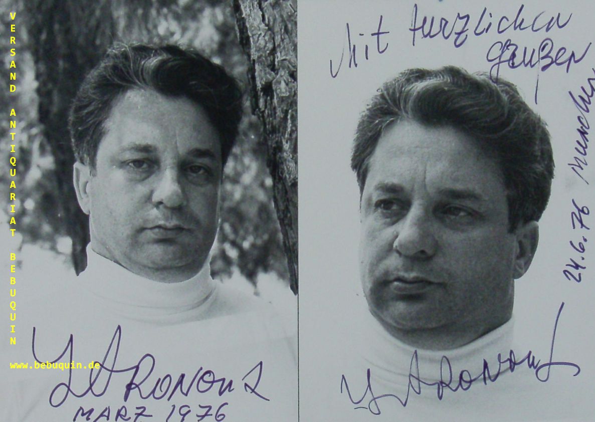 ARONOVICH, Yuri (Dirigent): 2 eigenhändig signierte und datierte Portraitfotos. München, März und Juni 1976. 8 x 12,5 cm. 2 Fotos. Juri Michailowitsch Aronowitsch (* 13. Mai 1932 in Leningrad; † 31. Oktober 2002 in Köln) war ein israelischer Dirigent russischer Herkunft. (Wikipedia)