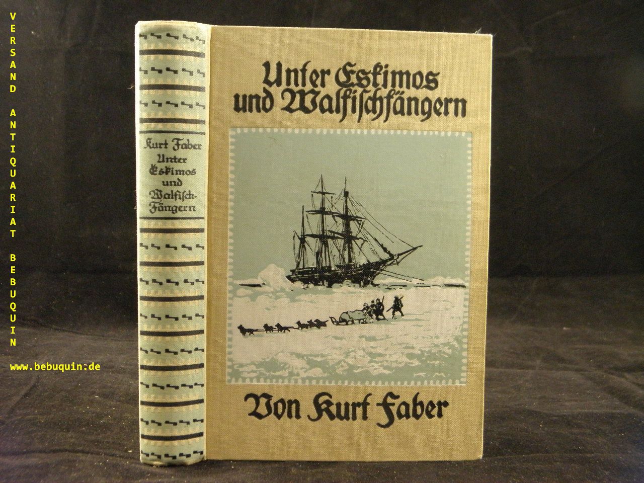 FABER, Kurt: Unter Eskimos und Walfischfängern. Eismeerfahrten eines jungen Deutschen. 3. Aufl. Stuttgart (Lutz Nachfolger), ca 1935. 369 S. mit 8 farb. Bildtafeln von Karl Mühlmeister + 1 farb. Faltkarte im Anhang. farb. ill. OLn. fliegender Vorsatz fehlt, sonst sehr gut erhalten.