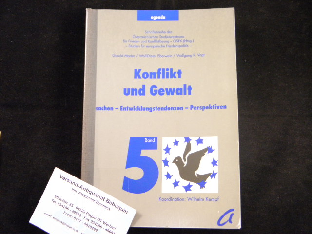 MADER / EBERWEIN / VOGT: Konflikt und Gewalt. Ursachen – Entwicklungstendenzen – Perspektiven. Münster (agenda), 2000. 443 S. OKart. Ordnungsgemäß aus Bundeswehrbeständen ausgesondertes Bibliotheksexemplar (Rückenschild, Stempel). = Studien für europäische Friedenspolitik, Bd. 5. seltener band.