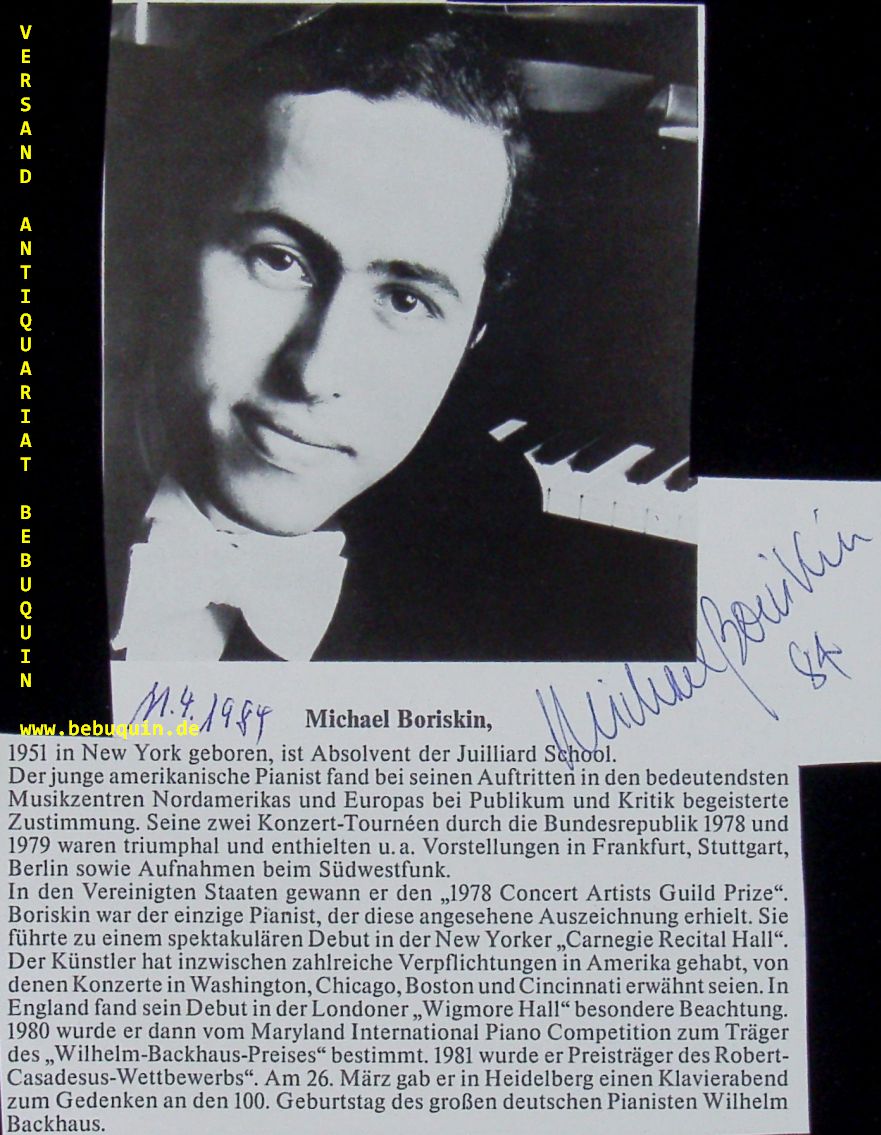 BORISKIN, Michael (Pianist): eigenhändig signierte Portraitseite. München (Philharmonie), 11.4.1984. 17 x 13 cm. 1 Bl.