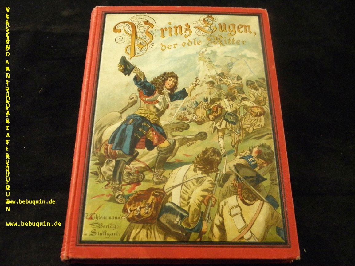 HOFFMANN, Otto: Prinz Eugen, der edle Ritter und seine Heldenthaten. Erzählung für die reifere Jugend. 3. Aufl. Stuttgart (Thienemann), (1890) 152 (8) S. mit 4 Farbendruckbildern von R. Haug. farb. ill. OLn. NaT, schönes Ex. seltene EA. Klotz 2791/25.