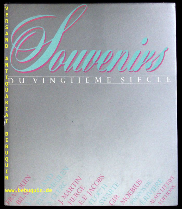 SOUVENIRS.– Du vingtième siècle. Franquin, Bilal, Y. Chaland, Ever Meulen, S. Clerc, J. Martin, Hergé, E.P. Jacobs, Floc’h, Swarte, Gir, Moebius. Paris (Littaye), 1983. Fol. 81, (14) S. mit überwiegend farb. Bildern und Bildtafeln. OLn mit OUmschl. Umschlag etwas lädiert. EA.