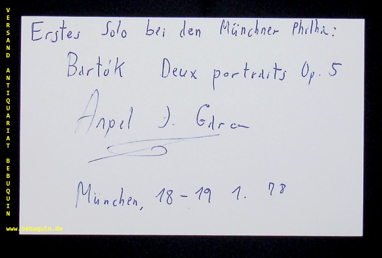 GARCIA MARTIN, Angel Jesus (Violinist): eigenhändig signierte und datierte Autogrammkarte. München, 18.1.1978. 8 x 12,5 cm. Karteikarte. geboren 1947. (Wikipedia)