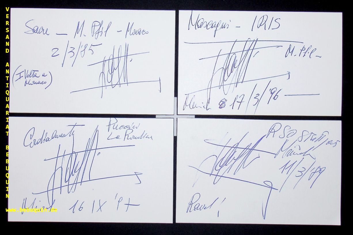 GELMETTI, Gianluigi (Dirigent): 5 eigenhändig signierte und datierte Autogrammkarten. München (Philharmonie), 1985 – 1997. 8 x 12,5 cm. 5 Kartenkarten.