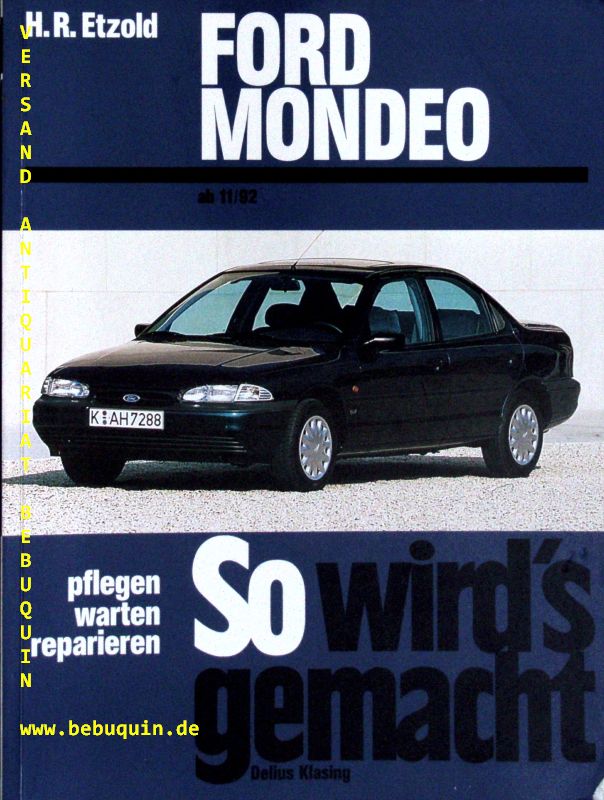 AUUTO.– ETZOLD, Hans-Rüdiger: Ford Mondeo : Limousine, Fließheck, Kombi. Benziner 1,6 l/66 kW (90 PS) ab 11/92 … ; Diesel 1,8 l Turbo-Diesel 65 kW (88 PS) ab 11/92. 1. Aufl. Bielefeld (Delius Klasing), 1994. Gr. 8°. 268 S. zahlr. Ill. und graph. Darst. farb. ill. OKart. leicht schief gelesen. = So wird’s gemacht, 91. EA.