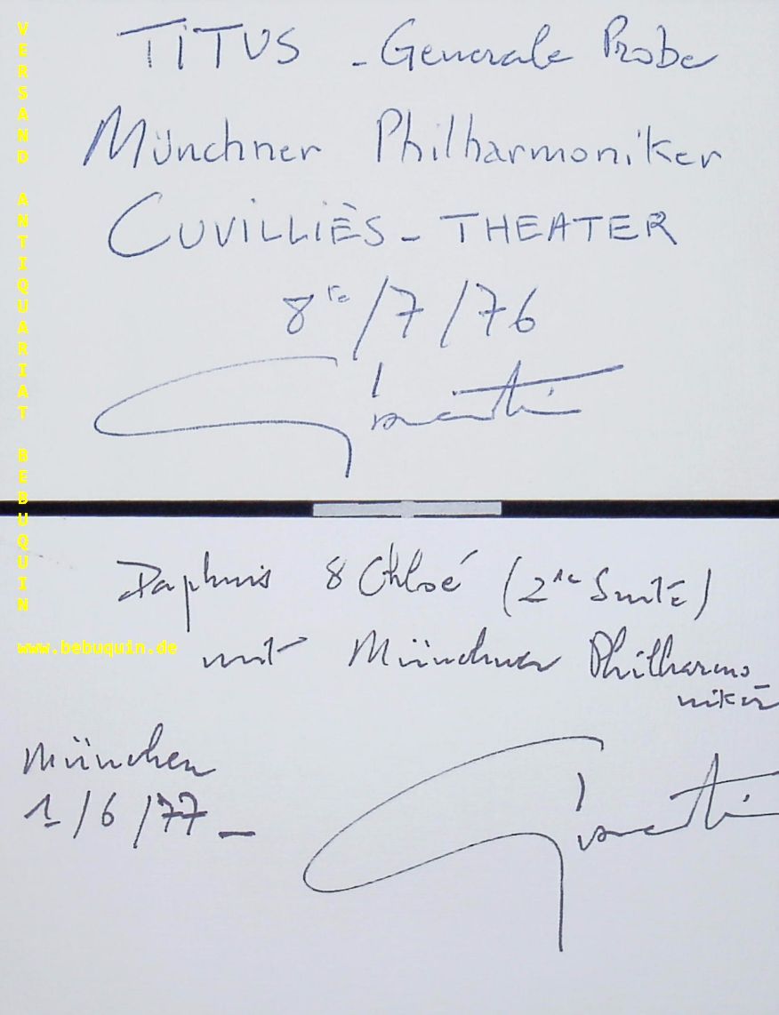 GIOVANINETI, Reynald (Dirigent): 2 eigenhändig signierte Autogrammkarten. München (Kongresssaal), 1976/77. 8 x 12,5 cm. 2 Karteikarten. italienischer Dirigent.