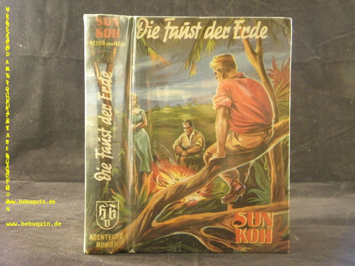 SUN KOH.– HOLK, Freder van: Die Faust der Erde. Abenteuer-Roman. Münster (Borgsmüller), ca 1960. 267 (4) S. farb. ill. OPb. gestempeltes Leihbuch. EA.