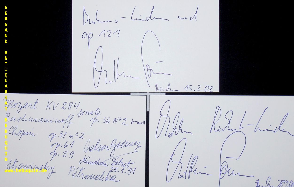 GOERNE, Matthias (Bariton): 2 eigenhändig signierte Autogrammkarten. München, 2000 + 2002. 8 x 12,5 cm. 2 Karteikarten. Matthias Goerne (* 31. März 1967 in Weimar) ist ein deutscher Lied-, Konzert- und Opernsänger (Bariton). (Wikipedia)