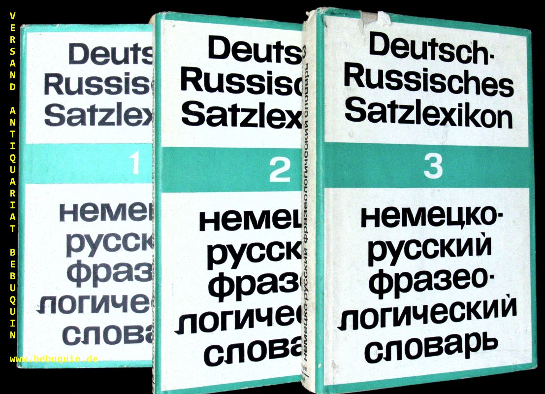 RUSSISCH.– PAFFEN, Karl A.: Deutsch-russisches Satzlexikon. Über 10000 Stichwörter mit über 43000 Sätzen = Nemecko-russkij frazeologiceskij slovar? 4. Aufl. 3 Bände. Leipzig (Enzyklopädie), 1970. Oktav. 1469 S. OLn mit OUmschl. Umschläge an den Rän cern löeicht lädiert.