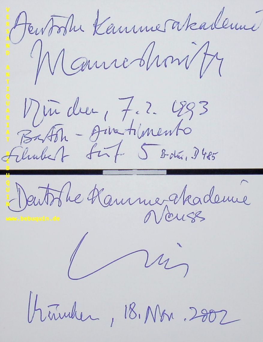 GORITZKI, Johannes (Dirigent): 2 eigenhändig signierte und datierte Autogrammkarten. München (Herkulessaal), 1993 + 2002. 8 x 12,5 cm. 2 Karteikarten. Johannes Goritzki geboren 1942 in Tübingen, Baden-Württemberg, Deutschland. gestorben am 22.12.2018 in Lugano, TI, Schweiz. (Wikipedia)