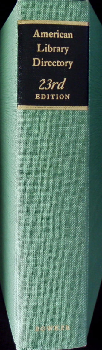 BIBLIOTHEKEN.– AMERICAN LIBRARY DIRECTORY.– A classified list of libraries with names of librarians, and statistical data compiled biennially. 23. ed. New York (Bowker), 1962. 4°. XIII, 1066 S. OLn mit goldgeprägtem Rücken. Vorsätze mit leichten Flecken, sonst sehr gut.