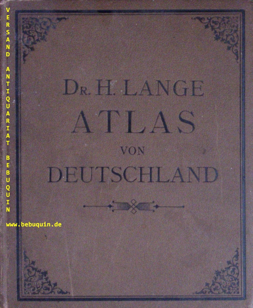 ATLANTEN.– LANGE, H: Atlas von Deutschland. Braunschweig (Westermann), 1886. 4°. 24 Blätter in Farbendruck. OLn mit Schwarzprägung. leicht bestaubt. seltene EA mit dem Deutschen Reich, seinen Provinzen und Königreichen sowie den Schutzgebieten.