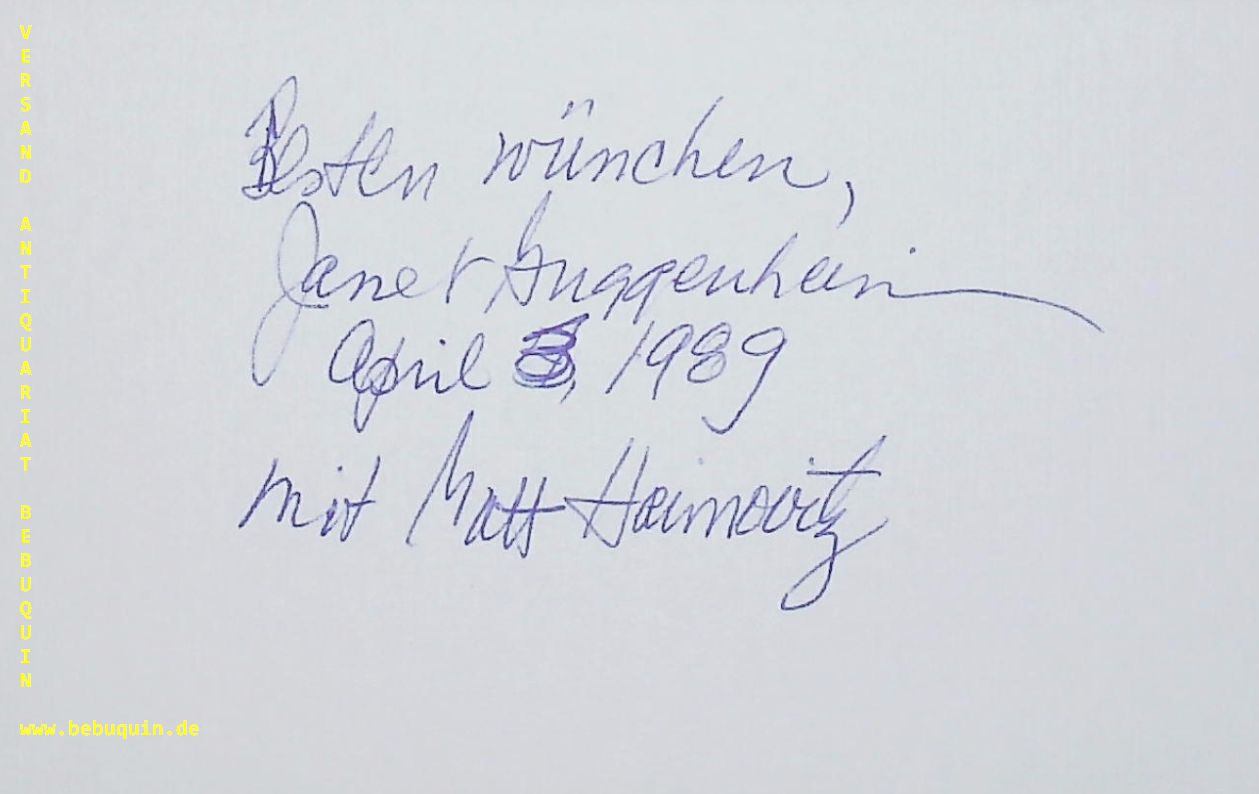 GUGGENHEIM, Janet (Pianistin): eigenhändig signierte und datierte Autogrammkarte. München (Herkulessaal), 3.4.1989. 8 x 12,5 cm. Karteikarte.