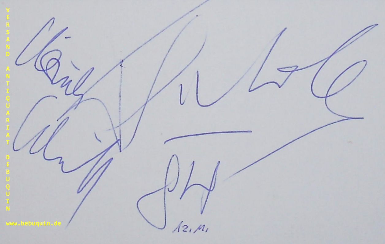 GULDA, Friedrich (Pianist, Komponist) + SCHIFF, Heinrich (Cellist): eigenhändig von beiden signierte und datierte Autogrammkarte. München, 12.11.1984. 8 x 12,5 cm Karteikarte. Friedrich Gulda (* 16. Mai 1930 in Wien; † 27. Jänner 2000 in Weißenbach am Attersee) war ein österreichischer Pianist und Komponist. Heinrich Schiff (* 18. November 1951 in Gmunden; † 23. Dezember 2016 in Wien) war ein österreichischer Cellist und Dirigent. (Wikipedia)