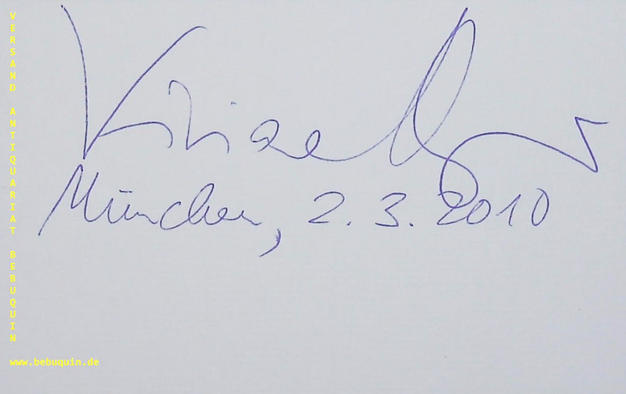 HAGNER, Viviane (Violinistin): eigenhändig signierte und datierte Autogrammkarte. München (Herkulessaal), 2.3.2010. 8 x 12,5 cm. Karteikarte.