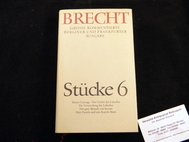 BRECHT, Bertolt: Stücke 6. Berlin (Aufbau), 1989. 484, 7 S. OLn. mit OUmschl. = Werke. Große kommentierte Berliner und Frankfurter Ausgabe, Bd. 6.