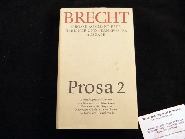 BRECHT, Bertolt: Prosa 2. Berlin (Aufbau), 1989. 595, 7 S. OLn. mit OUmschl. = Werke. Große kommentierte Berliner und Frankfurter Ausgabe, Bd. 17. 1. Aufl. dieser Ausgabe.