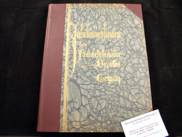 LEIPZIG.– LANGE, Walter + PAULSEN, Andreas: Deutschlands Jubiläumsfirmen. Handelskammerbezirk Leipzig. Leipzig (Rege), 1925/26. Gr. 4°. 260 S. mit 4 Tafeln, 1 farbigen Karte, dem farbigen Stadtplan sowie zahlr. Textabb. OHLn mit goldgeprägter Deckelschrift. NaT, feines Ex.