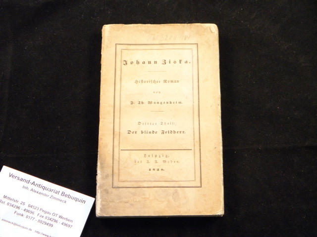WANGENHEIM, F. Th.: Der blinde Feldherr. 3. Theil (von 3) von Johann Ziska. Historischer Roman. Leipzig (Weber), 1838. 175 S. ill. OBr. Einband etwas angeschmutzt, unterer Blattrand mit leichtem Schmutzrand. EA.