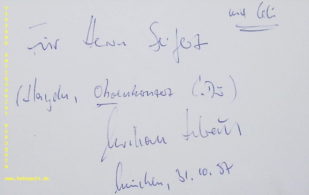 HELMRATH, Michael (Oboist): eigenhändig signierte und datierte Autogrammkarte. München, 31.10.1987. 8 x 12,5 cm. Karteikarte. Michael Helmrath (* 15. April 1954 in Wuppertal) ist ein deutscher Oboist und Dirigent und seit der Spielzeit 2016/2017 als Generalmusikdirektor des Theaters Nordhausen / Loh-Orchesters Sondershausen tätig. (Wikipedia)