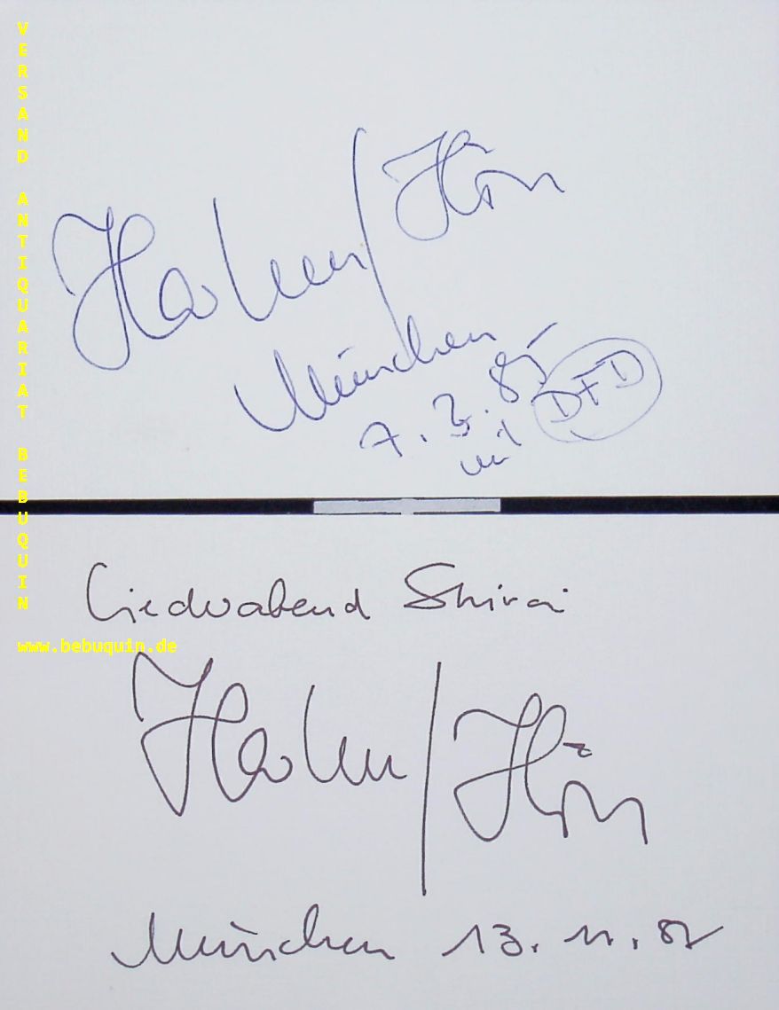 HÖLL, Hartmut (Pianistin): 2 eigenhändig signierte und datierte Autogrammkarten. München (Kongresssaal), 1985 + 1987. 8 x 12,5 cm. 2 Karteikarten.