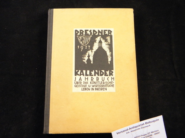 DRESDEN.– GOTTSCHALCH, Joh. Erich: (Hrsg.) Dresdner Kalender 1927. Jahrbuch über das künstlerische, geistige und wirtschaftliche Leben in Dresden. Dresden (Creutzburg), 1927. 288 S. mit zahlr. Textabb. + Bildatfeln. ill. OHLn Kante leicht angeplatzt. EA.