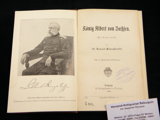 SACHSEN.– STURMHOEFEL, Konrad: König Albert von Sachsen. Ein Lebensbild. Leipzig (Voigtländer), 1898. 122 S. + 14 Bildtafeln. Ln der Zeit. Bibliotheksex. seltene EA.