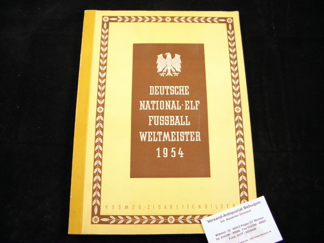 SAMMELBILDERALBEN.– KOSMOS ZIGARETTENBILDER.– Deutsche National-Elf Fussball Weltmeister 1954. Memmingen (Kosmos), 1954. 4°. 24 Bl. miot 100 Sammelbildern. ill. OPb. NaV, Titelseite mit Minieinriss, sonst tadellos. EA.