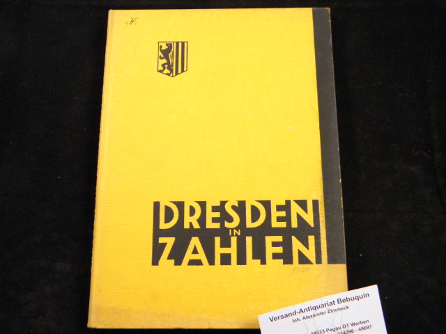 DRESDEN.– SCHUMANN: DRESDEN IN ZAHLEN 1929.– Statistisches Jahrbuch der Stadt Dresden. 27. Jg. Dresden (Zahn & Jaensch), 1929. Gr. 8°. 143 S. + 1 Faltkarte im Anhang. ill. OLn. Bibliotheksstempel auf Titelseite. EA.