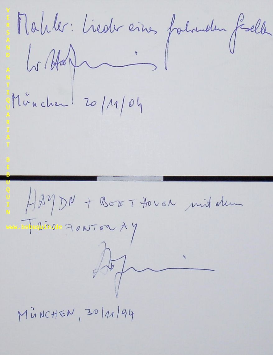 HOLZMAIR, Wolfgang (Bariton): 2 eigenhändig signierte und datierte Autogrammkarte. München (Herkulessaal), 1994 + 2004. 8 x 12,5 cm. 2 Karteikarte. Wolfgang Holzmair (* 1952 in Vöcklabruck, Oberösterreich) ist ein österreichischer Opern- und Operettensänger (Bariton). (Wikipedia)