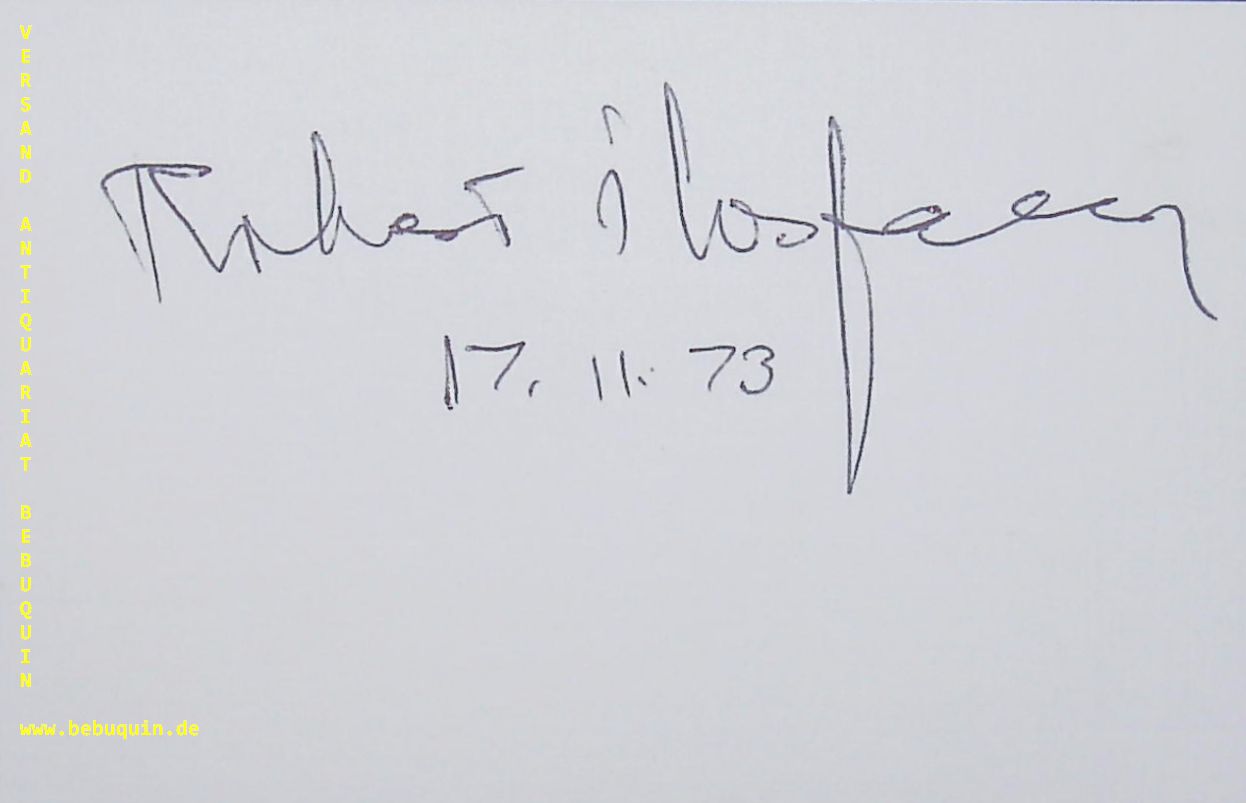 ILOSFALVY, Robert (Tenor): eigenhändig signierte und datierte Autogrammkarte. München (Herkulessaal), 17.11.1973. 8 x 12,5 cm. Karteikarte. Róbert Ilosfalvy (* 18. Juni 1927 in Hódmezovásárhely; † 6. Januar 2009 in Budapest) war ein ungarischer Opernsänger (Tenor). Er gilt als einer der bedeutendsten ungarischen Sänger. (Wikipedia)