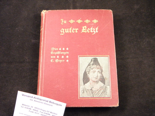 BEYER, C.: Zu guter Letzt. Vier Erzählungen. Schwerin (Bahn), 1901. 270 (1) S. ill. OLn. mit reicher Goldprägung. unteres Kap. angeplatzt, leicht leseschief, NaV.