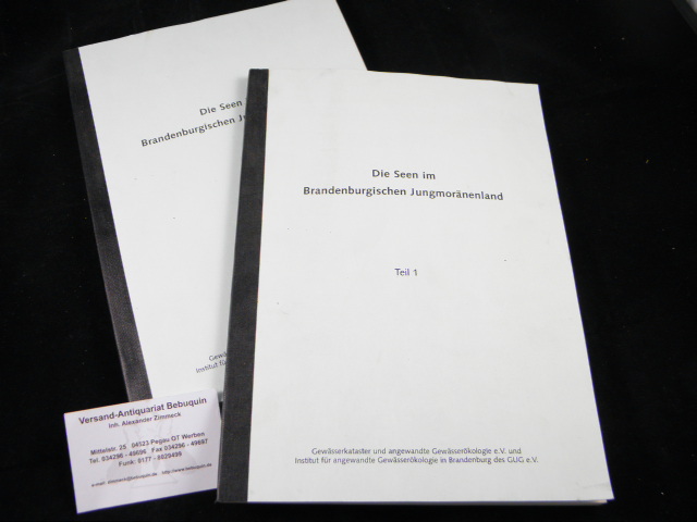 BRANDENBURG.– MIETZ, Olaf: (Hrsg.) Die Seen im Brandenburgischen Jungmoränenland. 2 Teile in 2 Bänden. 2 Bände. Potsdam (Gewässerkataster und angewandte Gewässerökologie), 1996. 4°. ca 300 S. mit zahlr. Abb. und Kartenskizzen. OHLn. StaT. Sehr interessante und seltene Veröffentlichung. Der Bericht entstand im Rahmen des Projektes „Seenkataster Brandenburg“.