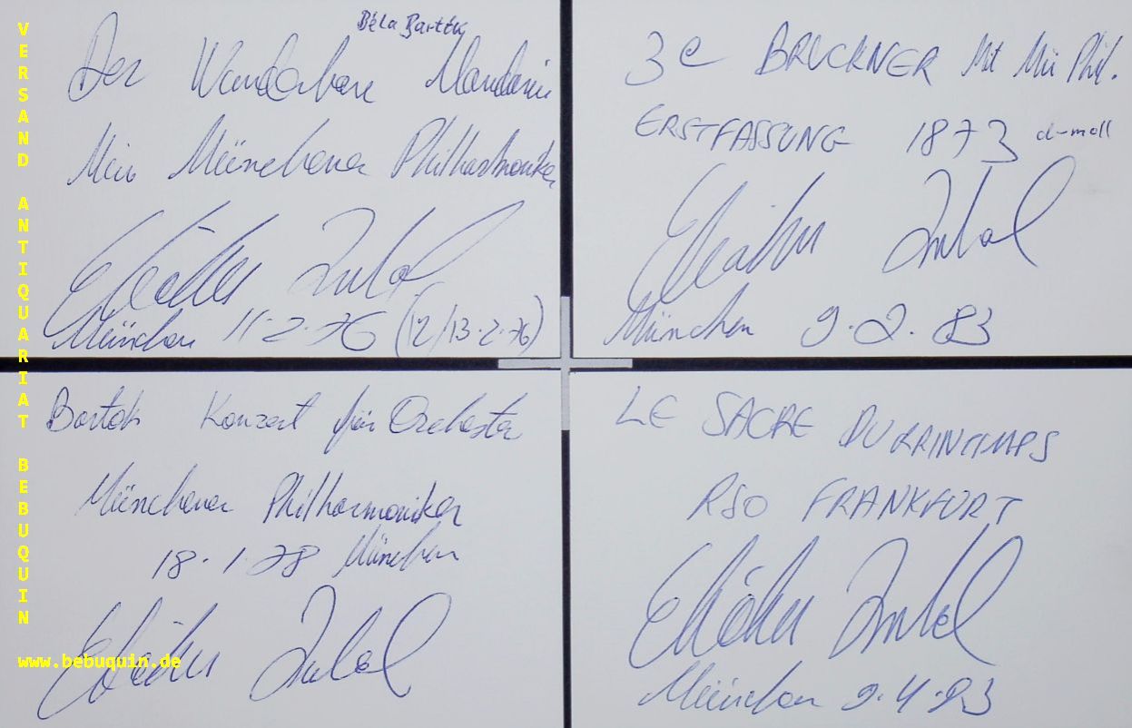 INBAL, Eliahu (Dirigent): 6 eigenhändig signierte und datierte Autogrammkarten mit teils ausführlichen eigenhändigen Programmbeschreibungen. München, 1973 – 1991. 8 x 12,5 cm. 6 Karteikarten. Eliahu Inbal (* 16. Februar 1936 in Jerusalem) ist ein israelischer Dirigent. (Wikipedia)