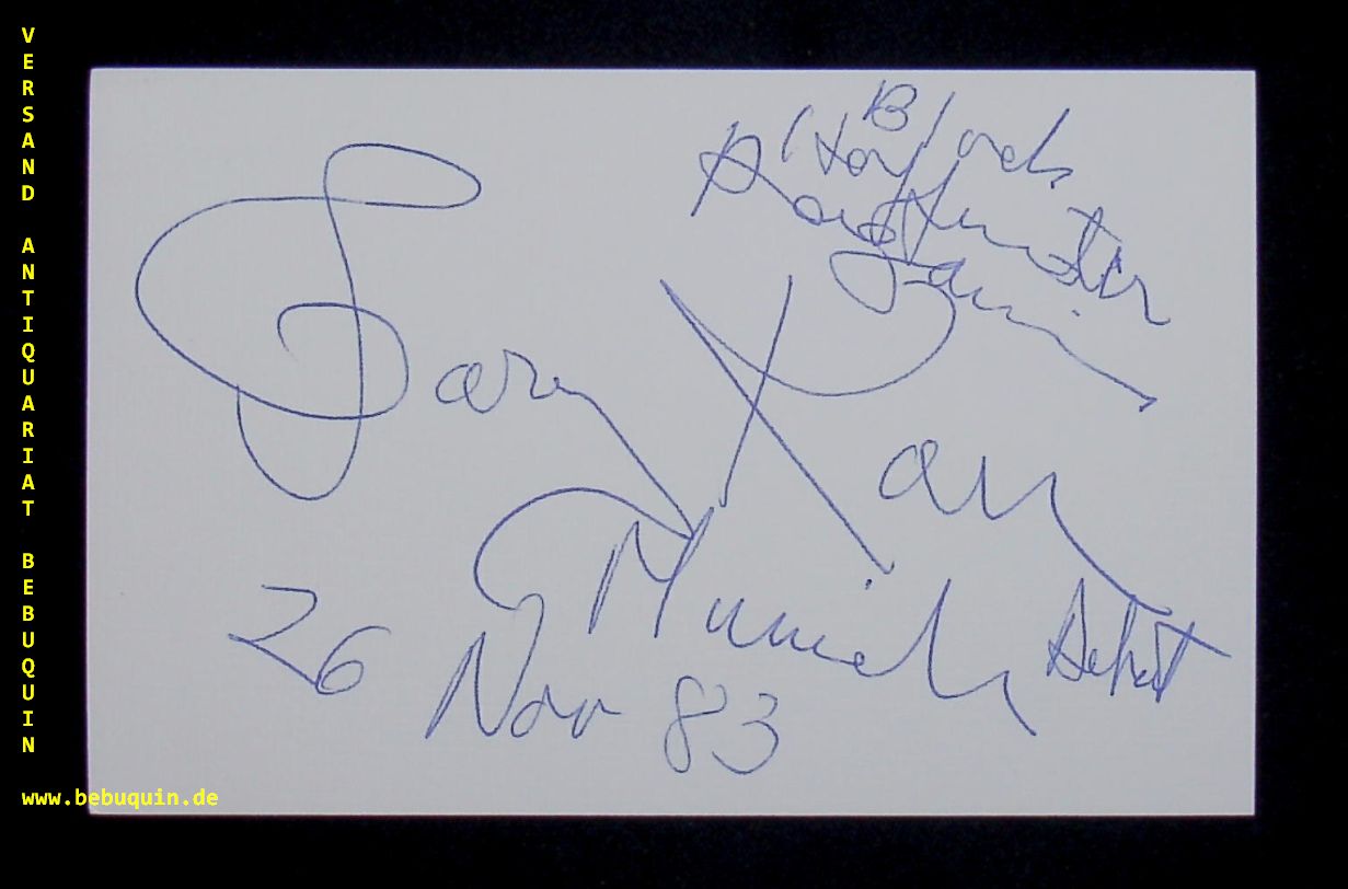 KARR, Gary (Bassist): eigenhändig signierte und datierte Autogrammkarte. München, 26.11.1983. 8 x 12,5 cm. Karteikarte. Gary Michael Karr (* 20. November 1941 in Los Angeles, Kalifornien) ist ein kanadischer Musiker US-amerikanischer Herkunft. Er gilt als einer der führenden Virtuosen auf dem Kontrabass. (Wikipedia)