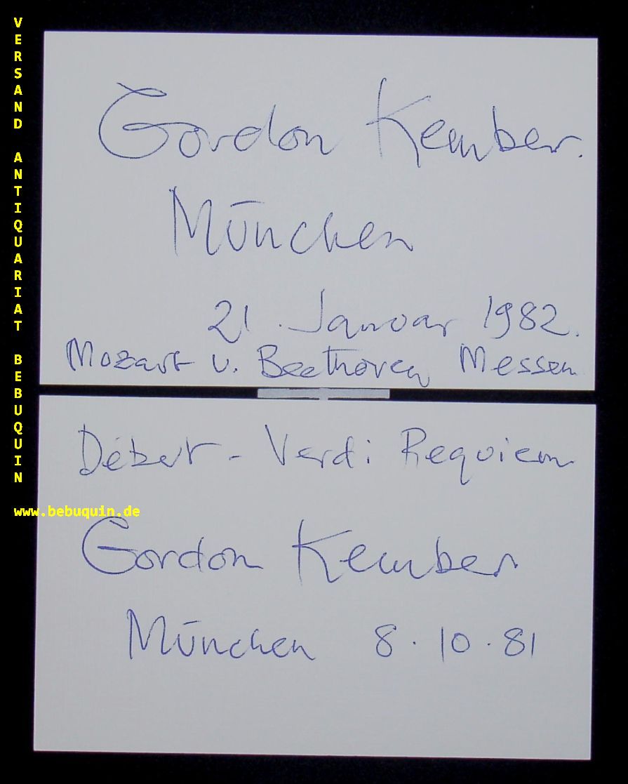 KEMBER, Gordon (Chorleiter): 2 eigenhändig signierte und datierte Autogrammkarten. München (Philharmonie), 1981 + 1982. 8 x 12,5 cm. 2 Karteikarten.