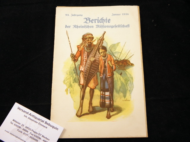 KOLONIEN.– BERICHTE DER RHEINISCHEN MISSIONSGESELLSCHAFT 1936.– Januar. 93. Jahrgang. Wuppertal, 1936. 32 S. mit Abb. farb. ill. OBr. kaum bestaubt.