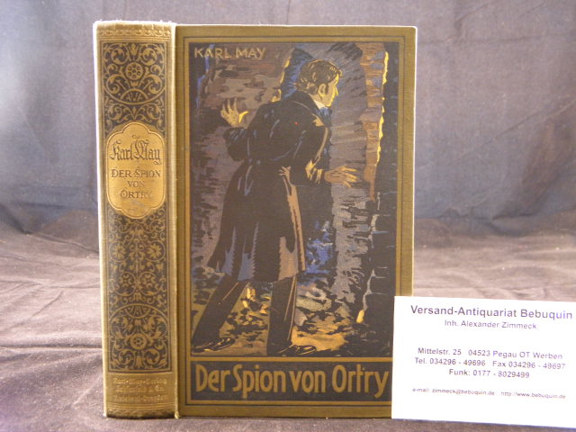 MAY, Karl: Der Spion von Ortry. Hrsg. von E.A. Schmid und Franz Kandolf. 1.– 30. Tsd. Radebeul (Karl May), ca 1925. 559 (1) S. farb. ill. OLn. schönes Ex. mit goldenem Rücken. = Gesammelte Werke, Bd. 58.
